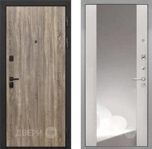 Входная Дверь Интекрон (INTECRON) Профит Black Дуб Турин ФЛЗ-516 Зеркало Сосна белая 960x2050 мм