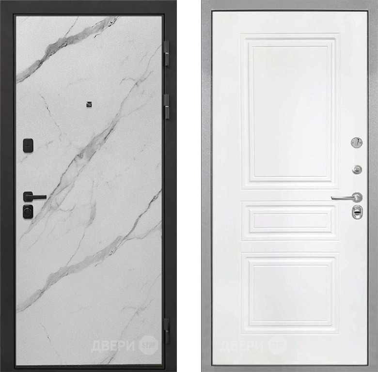 Входная Дверь Интекрон (INTECRON) Профит Black Мрамор Арктик ФЛ-243 Белый матовый 960x2050 мм