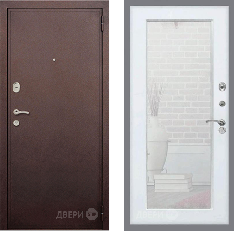 Входная Дверь Рекс (REX) 2 Медный Антик Зеркало Пастораль Силк Сноу 860x2050 мм