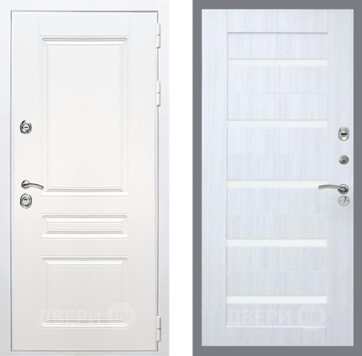 Входная Дверь Рекс (REX) Премиум-н Силк Сноу СБ-14 стекло белое Сандал белый 960x2050 мм